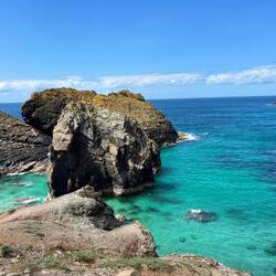 I slept in a bit, had a lovely breakfast of homemade croissants and gooseberry jam then toured the Minack Theatre- Google it! Fascinating outdoor theatre built 1931 by hand into the rocky cliff side.Leia mais
