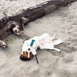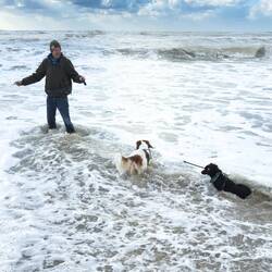 Gestern konnten wir bei 14 Grad die Sonne am Meer geniessen und heute tummeln sich die Doggies zu Hause im Schnee 🤭