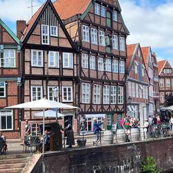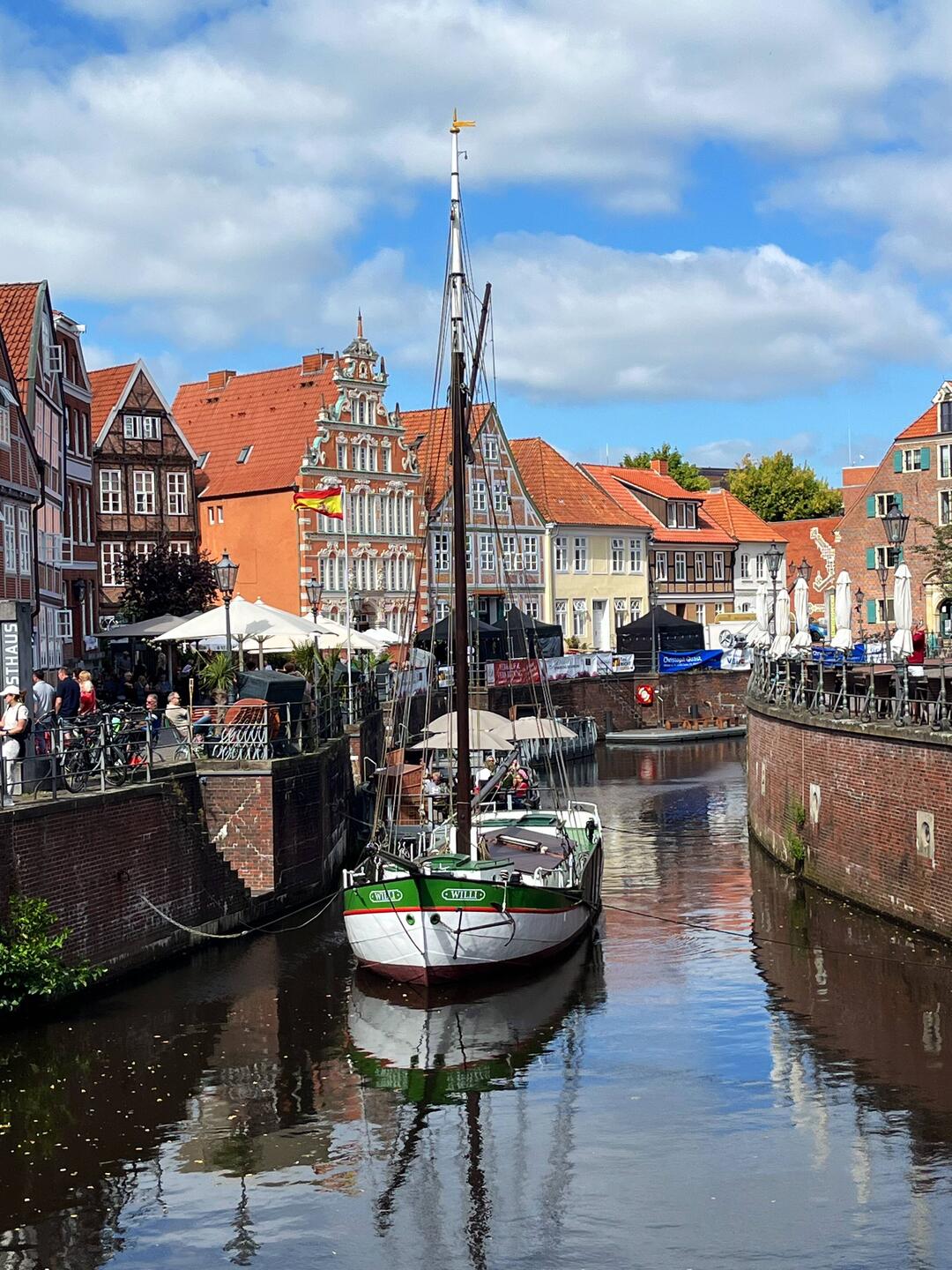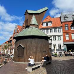 In Stade waren wir beim Griechen essen, haben das Freilichtmuseum auf der Insel gesehen, die Schwinge, den Hansehafen mit Schwedenspeicher und das Rathaus.