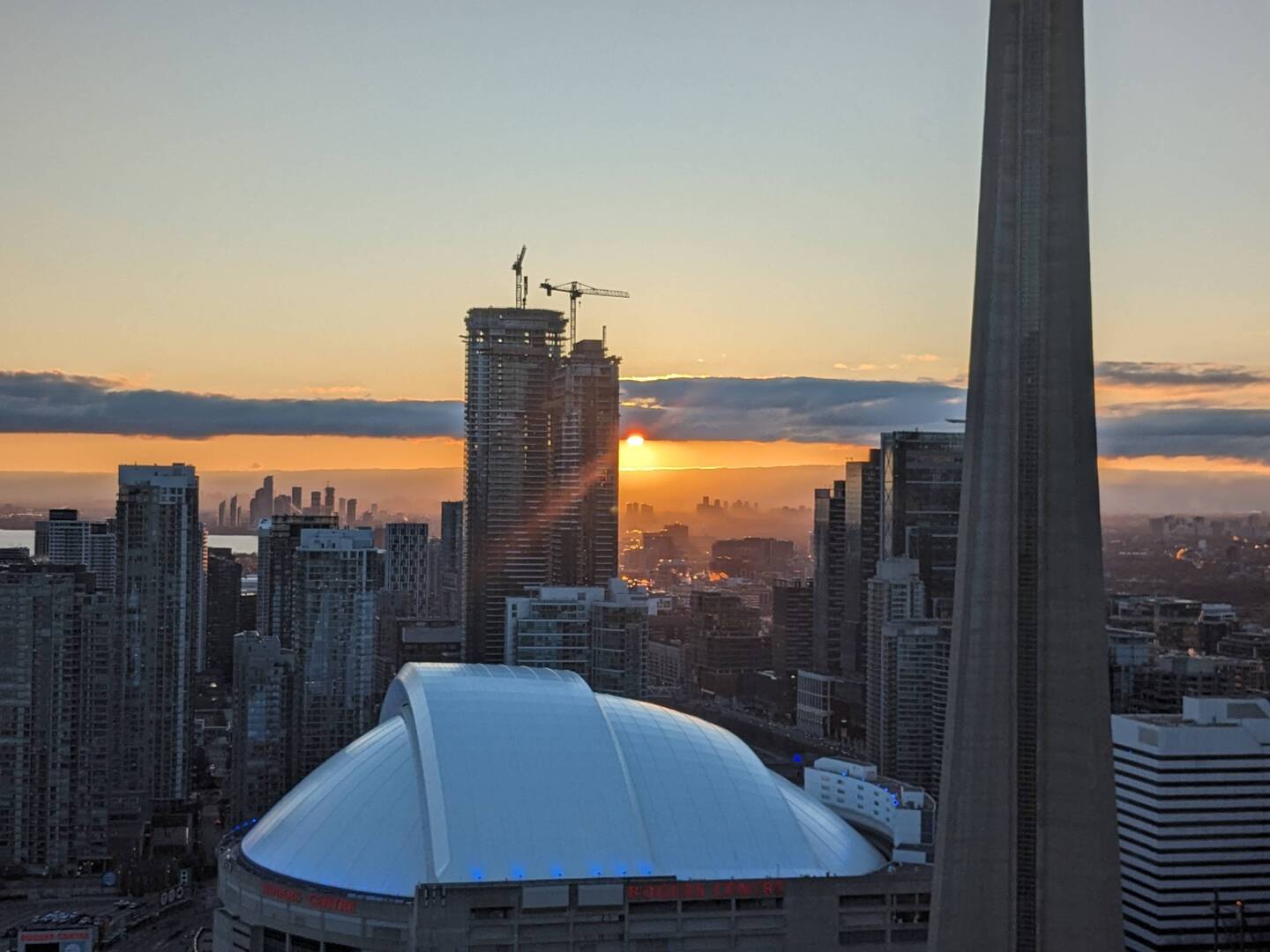 My apartment has great views of the city, the CN tower, and the lake. I got part of the sunset, but I was distracted playing dominoes for some of it.