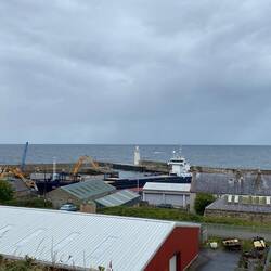 Nach einer schönen Anfahrt von 360 km sind wir bei zwischenzeitlichen 27 Grad und strahlendem Sonnenschein an der Fähre bei voller Bewölkung und 18 Grad angekommen.