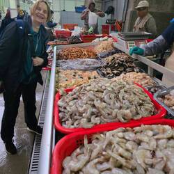 Das heutige Hauptthema ist das Essen in Peru 😋. Wir werden um 6 Uhr am Hotel abgeholt und fahren an den Stadtrand zu verschiedenen Märkten, zunächst zu einem Fischgroßmarkt. Lima ist nach Mexiko-Stadt und Sao Paolo an dritter Position, was den Verkehrsstau anbelangt - das können wir heute auch ordentlich miterleben und plaudern in dieser Zeit so recht und schlecht auf Spanisch mit unserer heutigen Reisebegleiterin. Sie erzählt, dass sie sehr gern in Lima lebt, es lediglich für die täglich 3 Stunden Zeitverlust im Stau etwas Punktabzug gibt.