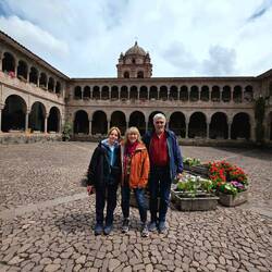 Als erste Station besichtigen wir Koricancha, einst der wichtigste Sonnentempel des Inka-Reiches und bis heute eines der bedeutendsten Heiligtümer der Anden. Seine Mauern aus perfekt behauenen Steinquadern sind ein beeindruckendes Beispiel für die hochentwickelte Inka-Baukunst des 15. Jahrhunderts. Der Zusammenhalt der Steine erfolgte nicht durch Lehm oder Mörtel, sondern ähnlich wie bei Lego durch Passgenauigkeit. Mehrfache Erdbeben der Region zeigten, dass Inkabauten nie durch ein Erdbeben zerstört worden sind. Nach der Eroberung durch die Spanier wurde auf den Fundamenten des Sonnentempels das Kloster Santo Domingo errichtet, wodurch sich indigene und koloniale Architektur einzigartig überlagern. Die zwangs-christianisierten Ureinwohner, welche den Großteil der Arbeit bei der Errichtung der Kolonialbauten taten, ließen zahlreiche Symbole ihrer alten Kultur einfließen, insbesondere bei der Gestaltung von Altären und Gemälden.