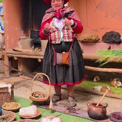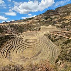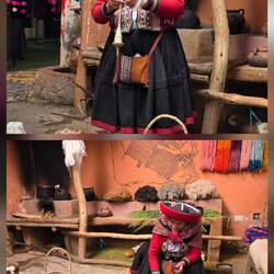 Zunächst fahren wir mit unserer Reiseleiterin in ein kleines Dorf, wo die Frauen gemeinsam aus der Wolle ihrer Alpakas Garne herstellen, selbst mit Naturmaterialien färben und zu edlen Decken und Kleidungsstücken verarbeiten. Unsere nächste Station ist Moray, eine von den Inka errichtete, ziemlich ausgeklügelte landwirtschaftliche Stätte, wo terrassenförmig unter Ausnutzung unterschiedlicher Mikroklimata diverse Pflanzen angebaut wurden.