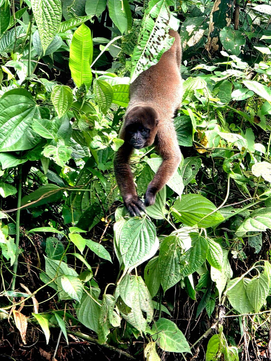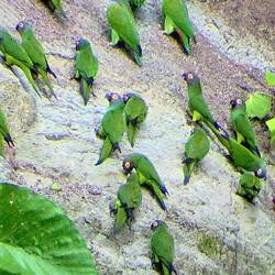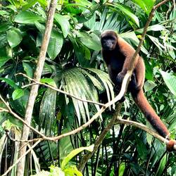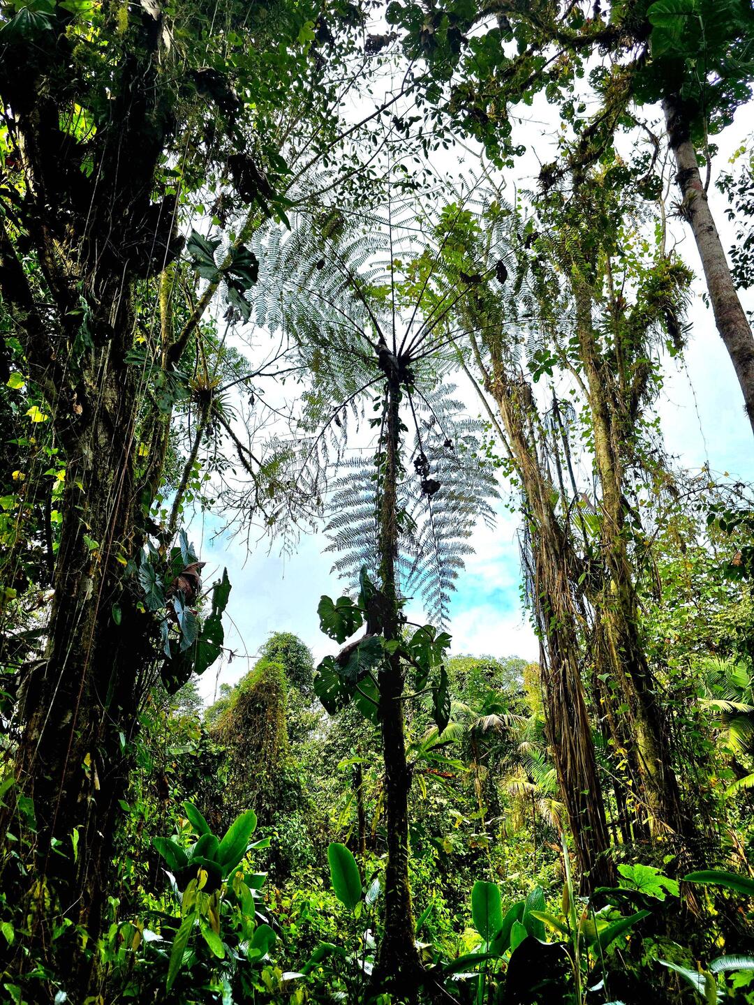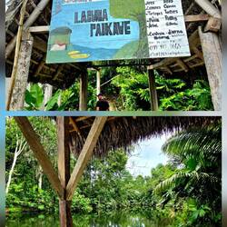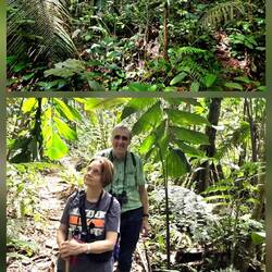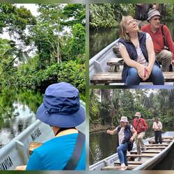 Vor dem Frühstück gibt es einen Bootsausflug zu einer kaolinhaltigen Gesteinsplatte, wo sich die Papageien treffen, um sich für ihr Gesundbleiben an den mineralreichen Bröckchen zu laben. Nach dem Frühstück geht es in den tropischen Regenwald. Im Gegensatz zum Andenwald, der durch Vulkanasche sehr fruchtbaren Boden hat, ist der Boden hier ziemlich karg und die Pflanzen sind darauf angewiesen, die Nährstoffe aus heruntergefallenen Blättern zu recyclen. Dennoch ist dieser Wald das artenreichste Ökosystem der Erde. Unser einheimischer Naturführer erklärt uns die Verwendung vieler Pflanzen als Heilmittel, als Gewürz, als Schmuck, als Baumaterial und als Nahrungsquelle. Ein Termitenbau wird beispielsweise als Insektenschutzmittel verwendet - erstaunlich, wie aromatisch Termiten riechen 😅. Wir sehen riesige Bäume mit Blockwurzeln sowie Wanderpalmen, die sich je nach Lichteinfall bis zu 40 cm pro Jahr bewegen können. Eine stachelige Frucht dient als Nahrungsquelle oder auch als natürlicher Kamm. Wir lernen, welche Blätter das optimale "Ersatz-Klopapier" sind und mit welchen Blättern man gut Nahrungmittel wie Fisch oder Gemüse eingewickelt über einem Feuer "im eigenen Saft" kocht.