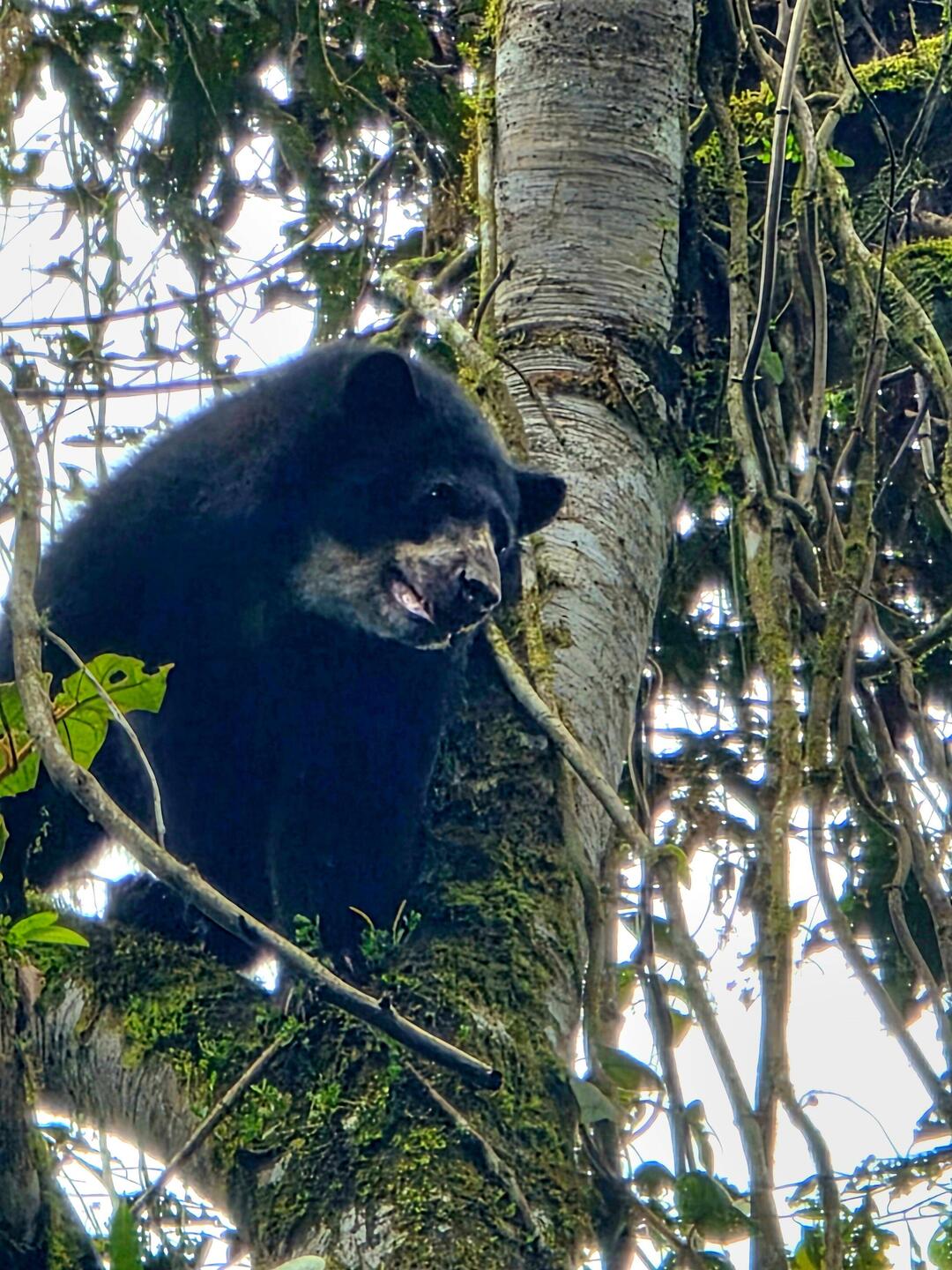 Nach dem Frühstück ziehen wir wieder unsere Gummistiefel an, sprühen uns mit "repelente" ein und bewaffnen uns mit Fernglas, Wanderstock aus Bambus und Handyfotoapparat. Unser Guide Mauricio greift sein dreibeiniges Spektiv - Fernrohr, das uns später noch hervorragende Dienste erweist. Wir bestaunen die schier unermessliche Vielfalt von Pflanzen und Bäumen im milchigen Morgenlicht. Vögel im Regenwald zu beobachten ist total schwierig, da diese weder am Wegesrand auf Touristen warten noch sonst sich irgendwie bemerkbar machen. Dank Mauricios Ortskenntnis und geschultem Blick hält er mehrmals scheinbar spontan an, stellt sein Spektiv auf und zeigt uns fünf Baumreihen entfernt auf dem siebten Ast herrlich bunte Vögel, die wir direkt vom Okular abfotografieren können. Der Hauptgrund unserer Mission jedoch ist die Sichtung eines Brillenbären. Zu diesem Zweck lässt uns Mauricio wie am gestrigen Tag schon an bestimmten Weggabelungen für ein paar Minuten allein, um zunächst ohne Rucksack und Spectar schneller den Bären zu orten. Seiner Aussage nach sei der Bär aufgrund seiner Essgewohnheiten für Menschen ungefährlich (mit Ausnahme von deutschem Touristenfleisch😂) ... Kurz vor dem Ende der Wanderung biegt er wieder ins Dickicht ab und wir stützen uns wartend auf unsere Bambusstöcke bzw. knipsen noch ein paar Blüten, Käfer und Schmetterlinge. Plötzlich kommt Mauricio heftig gestikulierend zurück und winkt uns ins Dickicht, wo wir zunächst einmal... gar nichts sehen. Dann wiederum etliche Baumreihen weit entfernt auf einem birkenähnlichen Baum, der höher ist als unser Haus, ist ein dunkler Klumpen, der die dünnen Äste schüttelt. Da ist er endlich, der Bär! Er bewegt sich in großer Höhe langsam und sehr geschickt, um etwa haselnussgroße Früchte (aguacatillos) zu naschen. Trotzdem bangt man jeden Moment, dass die Äste, auf denen er klettert, brechen könnten. Wir bleiben fasziniert stehen und mittlerweile erscheinen fast ein dutzend Leute hinter uns - Mauricio hatte per Handy der ganzen Belegschaft Bescheid gesagt. Am Ende können wir sogar noch filmen, wie der Bär den Baum mühelos herunter klettert. Glücklich und zufrieden kehren wir in unsere Lodge zurück, wo auch schon ein liebevoll zubereitetes und schmackhaftes Essen auf uns wartet. Als Nachtisch gibt es Bananenkuchen und Kaffee aus eigener Ernte(!), während der Regenwald bereits wieder seinem Namen alle Ehre macht und es kräftig regnet.Read more