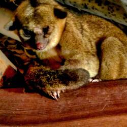 Von gestern ist noch zu berichten, dass wir beim abendlichen Bier ein kleines affenähnliches Tier, am ehesten einen Wickelbären, im Dach der Lodge herumklettern sahen, dessen Lieblingsspeise Bananen sind, wie uns eine in der Lodge zeitweilig lebende Praktikantin sogleich vorführte.