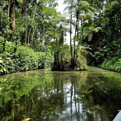 Wir verabschieden uns von der charmanten tropischen Itamandi-Lodge am Arajuno-Fluß (dieser fließt in den Napo und der Napo in den Amazonas) und setzen unsere Rundreise durchs Land fort. Noch im Amazonasgebiet besuchen wir ein Sumpfgebiet, steigen in ein Boot und gleiten lautlos auf einem Kanalsystem durch die tropische Natur, sehen ein paar bananenhungrige Wollaffen, aber auch attraktive bunte Vögel sowie im Wasser gigantische Riesenwelse.