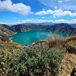 Am Vormittag machen wir uns auf den Weg nach Quilotoa, wo sich ein traumhafter Kratersee befindet. Auf 3800 Metern Höhe wandern wir ein Stück am Kraterrand entlang und können uns an dem wunderschönen Türkis des Wassers kaum satt sehen 🥰. Das Wasser soll eine Temperatur von 13-14 Grad haben. Man könnte die 400 Höhenmeter zum Wasser hinunterwandern - die Felix-Familie hätte das bestimmt auch getan und ein kühles Bad genommen 😅. Die Umrundung des Sees sind 13 Kilometer; auch diese Strecke ist uns (in dieser Höhe!) zu lang - das tut dem Genuss jedoch keinen Abbruch.