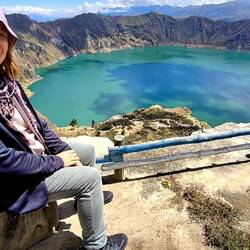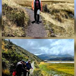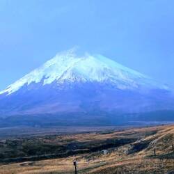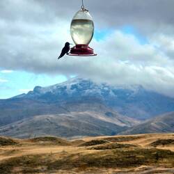 In der Nacht und ganz in der Frühe gibt es noch mal einen guten Blick auf den Cotopaxi-Vulkan - im weiteren Verlauf hüllt sich die Spitze komplett in Wolken. Nach dem Frühstück (mit Kolibri-Blick!🤓) verlassen wir die Lodge und nehmen auf knapp 4000 Metern Höhe einen Rundwanderweg um eine Lagune mit Sumpfgebiet und können noch ein wenig die für diese Höhe typische Tier- und Pflanzenwelt studieren. Neben einer ganzen Reihe von Vögeln - darunter die Andenmöwe und die Andenente - sehen wir die einzige Echsenart dieser Region. Von den Pflanzen erfreut uns besonders ein winziger Enzian mit etwa nur einem Zentimeter Durchmesser. Nach absolvierter Wanderung werden wir noch durch ein Informationszentrum geführt, erfahren Wissenswertes über die ecuadorianischen Vulkane und das uns allen gut bekannte Abschmelzen der Gletscher durch den Klimawandel, hören aber auch von Alexander v. Humboldt, der 1802 die Vulkane Cotopaxi und Chimborazo erklettert hat.