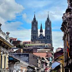 Nun ist es Zeit, Richtung Quito aufzubrechen, wo wir gegen 16 Uhr in unserem Hotel ankommen. Ein familiär geführtes, über 100 Jahre altes, sehr stilvolles Anwesen in der Altstadt, in dem die Familie selbst auch wohnt. Quito liegt spektakulär eingebettet in den Anden auf 2.800 Metern Höhe und gilt als eine der höchstgelegenen Hauptstädte der Welt. Trotz der Höhenlage herrscht ein angenehm mildes Klima, aktuell regnet es jedoch noch ein wenig. Das hält uns nicht von einem ersten Erkundungsgang ab - in der Dämmerung liegt ein beeindruckendes Abendrot über der Stadt.