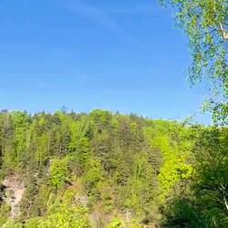 Auf der Hinfahrt komme ich wieder an Schmilka vorbei, wo ich die Grenze nach Tschechien passiere. Schon kurz nach der Grenze finde ich verdächtig viele Autos vor mir, und alle scheinen ebenfalls wie ich an der gleichen Stelle abzubiegen. Schnell wird klar, dass das Prebischtor die Attraktion schlechthin ist und ein Massenansturm unausweichlich ist. Darauf habe ich jedoch absolut keine Lust, also fahre ich einfach ein Stück weiter in Richtung Kernzone des Nationalparks. Ich bastle mir kurzfristig eine neue Wanderroute zusammen, und schon kann e, ganz ohne Prebischtor, losgehen! 🤸🏼♂️