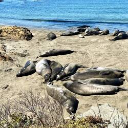 Übernachtet haben wir dann in San Simeon, ein kleines Örtchen genau am Pazifik. Hier haben wir die größte freilebende Gruppe Seeelefanten besucht... lustige Tierchen 😆 es war allerdings nur einLeggi altro