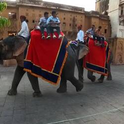 We took a bus to Amber Fort (pronounced Amer). The fort itself is impressive. As we pulled into the parking lot, we saw a few snake charmers with hooded cobras. To get up to the fort, we rode inRead more