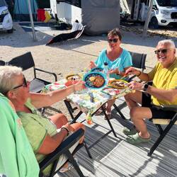 Wir sind in Spanien! Die Sonne ☀️ begrüßt uns, wir können endlich wieder draußen sitzen.