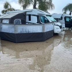 Der Regen hat uns noch tatsächlich bis zum neuen Stellplatz verfolgt, was für ein Pech!