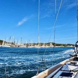 The way home was more relaxing. We just had the front sail up, so no heeling! We sailed through the bays, checking out the local real- estate ( houses and boats).