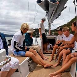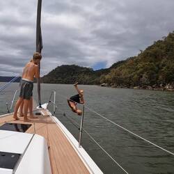 We sailed to Hungry Bay for a swim and a prawn lunch.
