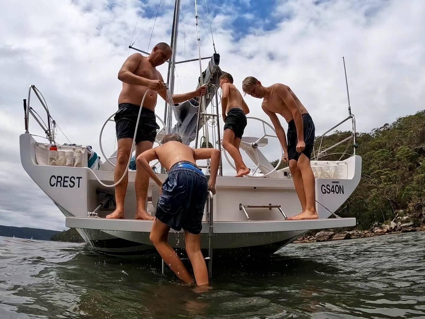 The trip to Hungry Bay was fun filled. Brett learnt some sailing, helping to put the sails up and we all leant some of the sailing lingo, the first word being ‘ heeling’. The owner Steve warned us that his boat heels, but I was not ready for this! This is when the boat leans really far over to one side! And if you are not holding on watch out! There was some screaming, laughing and grabbing for something to hold onto!