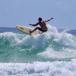 Lachie was determined to improve his surfing these holidays, particularly his turns. He had some great waves getting sore arms from all the paddling.