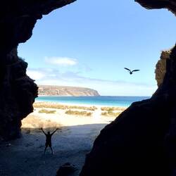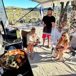We got ourselves a prime beach front spot and we can see way people rave about this place. A stunning protected bay, a jetty to jump off and snorkel under, a cave to explore, shells, squid and scallops. Not a bad way to spend a week!Read more