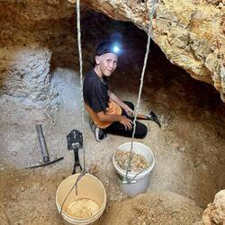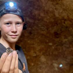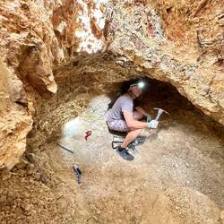 Lou was super keen to give us the run down and show us what he and his partner Wendy had been collecting for the last few weeks. They had some amazing pieces, Brett and I were chomping at the bits to get digging, we mentioned the kids back at the van, but he was a talker ( not a good combo with Brett 🤣! ). Before we knew it he had us over at his massive hole, showing us what it was all about, then he invited us down for a dig! How could we say no 🤷🏼‍♀️. By this time the kids had joined us. Lachlan was super excited to get down the hole, this is what mining was all about! He got his boots, long pants, head torch and pic! He was set. Brax, Lachie and Brett spent a few hours in the hole pulling out stunning gems and geods, while I did some sieving and geod cracking on the surface.