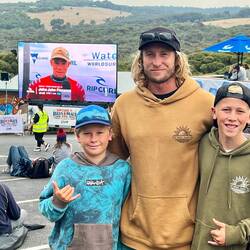 We left the caravan park in the dark, boys on bikes and us on foot, making the 3.5 kilometre trek to Bells not knowing wether or not it was on or off. It was on! They surfed Winky Pop which has very limited viewing, however we were early and secured a bench seat we could stand on for uninterrupted views. As they started the comp they cranked the speakers up and blasted AC/DC Hells Bells, apparently it is tradition and boy did it get you exited. We watched all of our favourite surfers ripping it up. Jack Robinson, Toledo, Medina, Owen Wilson, John John, Molly Picklum, Sally Fitzgibbon, Steph Gilmore and more however we were all very exited to see Kelly Slater, the greatest surfer of all time. We were expecting something special when Kelly entered the water with Jack Robinson however he had a shocker, barley landing anything in the choppy conditions. Jack dominated the heat demonstrating why he is leading with multiple airs, massive turns and big scores, he was un believably good.
