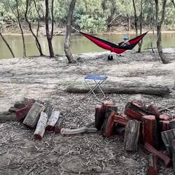 We headed down the river, and scored a ripper of a spot. The van had river front views, the kids had trees to put their hammocks in and the neighbors had already dug the hole for the fire pit.