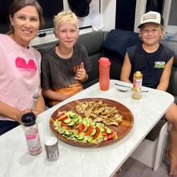 Lachie, Brax and Brett are all obsessed with Sushi! Me, not so much! So we decided to give making it a go. Whilst we were home Brax did a sushi making lesson, so the pressure was on him to teach us all.
