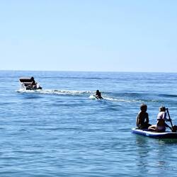 He did all his favourite things, a huge waffle breakfast, jetty jumping, skurfing, hotdogs, paddleboarding, swimming, bike riding, gaming, playing with his tech decks, piñata, cake and garlic prawns and the best bit was he had made a great mate here to share it all all with, so he was stocked.