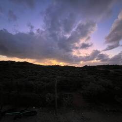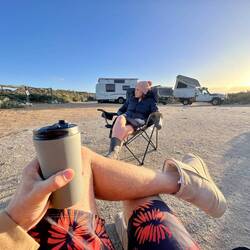 We rolled in in the dark! Brett had a doctors app during the day, so we were running a tad late. We could only see one other camper as we rolled in, but in the morning Brett and I were straight out scoping the place out, when we bumped into Lou.