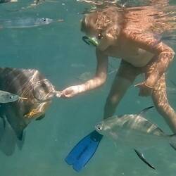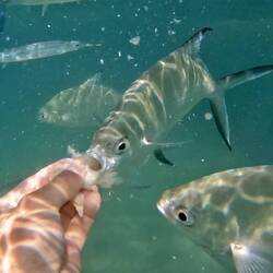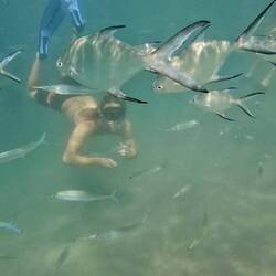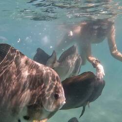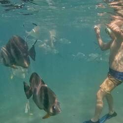 As we pulled in we spotted a few fish, so we grabbed the bread and jumped in. We fed the fish while they swam around us,Read more