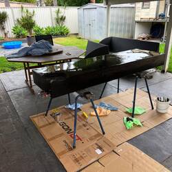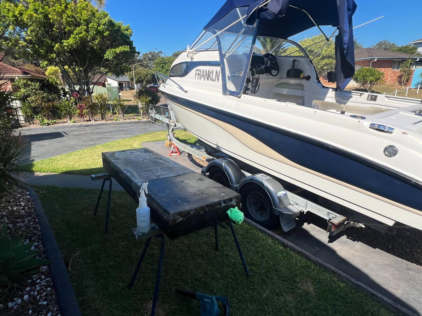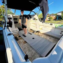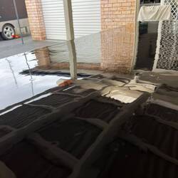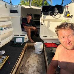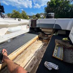 Cut the floor out to remove the leaking under floor 150L fuel tank. Hole fixed, sanded and painted before reinstalling. New Eva Foam flooring installed instead of carpet, and fixed a handful of otherLes mer