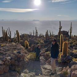 We visited the Isla Incahuasi, a large rock outcrop with giant cacti, and fossils of coral and algae that are left over from when the Salar de Uyuni was once a massive salt lake 40,000 years ago.