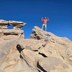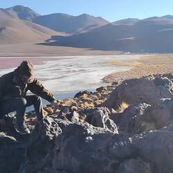 The tour took us to where the wind swept the sand in the Altiplano sand dunes to erode the sandstone forming the Árbol de Piedra ("stone tree"), an isolated rock formation in the Eduardo Avaroaもっと詳しく