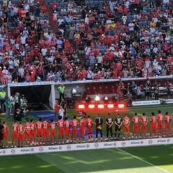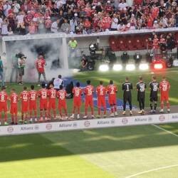 Wir sind vorhin an der Bayer Arena vorbei gefahren
