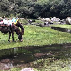 Genau deswegen geht es am 20.12. früh morgens los auf den Lares Trek. Wir machen nicht den klassischen Inka-Trek, weil er mittlerweile zu sehr überlaufen ist. Und um eines vorweg zu nehmen: wir sehen die ganze Wanderung tatsächlich keine anderen Touristen - unser Plan ist also aufgegangen. 👍 Wir sind sogar „alleiner“ als geplant, denn bei der Trek-Besprechung am Vorabend erfahren wir, dass sich niemand sonst für die Tour angemeldet hat. Auf den Weg machen sich also Pit, Evi, Americo (unser Guide), Odilon (unser Koch), ein Helfer, der „Horse-Man“ und seine drei Mulis. Wir fühlen uns bei so viel menschlichem und tierischem Personal fast ein bisschen unwohl. 🙈
