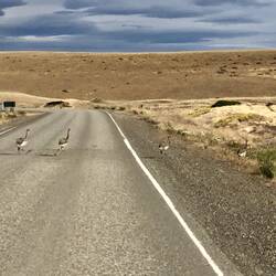 Ab der Grenze sind dann auch die Straßen wieder asphaltiert... Halleluja!!! Wir fahren jetzt deutlich schneller durch den Süden Argentiniens vom Dorf Perito Moreno immer Richtung El Chalten. Die Landschaft ist deutlich anders als am Vormittag: alles viel weiter, viel karger und es ist deutlich wärmer als noch in Puerto Rio Tranquillo. Wir sind ähnlich wie im Norden Chiles wieder in Steppe bzw. Halbwüste unterwegs. Strauße und Lamas wechseln sich am Wegesrand ab und jetzt macht die ruckelfreie Fahrt auch wieder Spaß (bis auf unerwartete 78 km erneute Schotterstraße, teilweise frisch aufgekiest 😫).