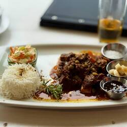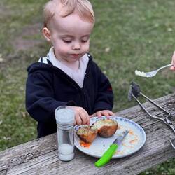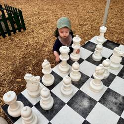 Am ersten Abend entdecken wir aber gleich noch ein Highlight von Plettenberg, den „Market Off Main“, einen großen „Genussmarkt“ unweit unserer Unterkunft. Man muss sich das so vorstellen, dass auf einer zentralen Fläche Tische und Stühle stehen und man sich frei seinen Platz sucht, gerne auch zusammen mit anderen an einer großen Tafel. Essen gibt es vielfältiges von Südostasien über Indien bis Italienisch - zu allem gibt es hier einen kleinen Stand. Und alles was wir probiert haben, schmeckt richtig guuut! 🤤 Mit Momo ist es natürlich auch super praktisch, denn er kann rumwuseln und freut sich vor allem über die überdimensionalen Schachfiguren. Er denkt es sind Salz und Pfeffer. 😂