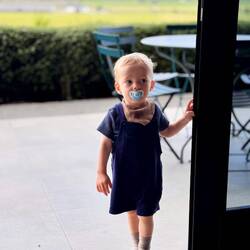 Momo macht bis 30 Minuten vor Schluss gut mit, aber dann hat er schlichtweg keine Lust mehr auf den Autositz. Dazu kommt, dass er leider ein bisschen kränkelt und somit die Stimmung leicht kippt. So werden wir zu einem kleinen Mittagsstop in einem Restaurant kurz vor Ankunft „gezwungen“ - gibt schlimmeres. 😉