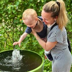 Wir spielen mit Momo, trinken ein bisschen Wein und Pit grillt auf der offenen Feuerstelle. Momo gefällt es sichtlich, herumzutollen und im Gras und auf der Terrasse herumzuwuseln. Es ist einfach, aber einfach schön und bringt einen total runter. 😌 Eigentlich reißen uns nur zwei Dinge ganz kurz aus der Entspannung: als Pit einen Spielzeugflieger aufs Dach der Hütte schießt und ihn etwas abenteuerlich wieder runter holt und als wir merken, dass nachts Fledermäuse die Mücken in der Hütte futtern. Ja, wir sind echt mitten in der Natur. 😅