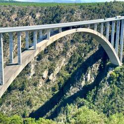 Damit es nicht zu beschaulich zugeht, stoppen wir auf dem Weg dorthin an der Bloukrans Bridge und Pit macht einen Bungeesprung. Das ist so ganz nebenbei die höchste Bungee-Brücke der Welt, was aber den alten Adrenalinjunkie kalt lässt. 😉 Ganz routiniert stürzt sich Pit in die Tiefe und nach dem Sprung zeigt seine Pulsuhr, dass der Herzschlag nie über 100 ging. Haha beim Zusehen auf dem Bildschirm im nahegelegenen Café sieht man da ganz andere Nervenbündel beim Absprung. 😂