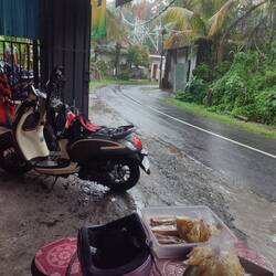 Auf dem Rückweg mussten wir uns gefühlt alle 5 Minuten unterstellen. Bin ja froh das ich hinten saß und den ganzen Regen nicht mitten ins Gesicht bekommen hab. Trotzdem komplett nass. Nachdem wir dann Ewigkeiten später in Ubud angekommen sind wollten wir noch was aus dem Supermarkt holen. Ich glaube ich hab selten so gefroren durch die Klimaanlage und die nassen Sachen.