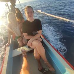Zuerst den Sonnenaufgang genossen und ewig gefahren. Keine Delfine weit und breit. Dann haben sich alle Boote versammelt und man hat schon das erste schreien gehört. Die ersten Delfine waren zu sehen. Immer wieder sind die hochgekommen. Zuerst wollte ich nicht ins Wasser, aber dann musste ich die Chance ergreifen. Also schnell die Klamotten aus und rein ins Wasser. Ich hab mich bestimmt über eine halbe Stunde vom Boot schleppen lassen. So so so einmalig schön. Die Delfine, die man vom Boot aus gesehen hat waren nichts zu dem, was ich im Wasser unter mit gesehen habe. So viele Delfine die unter und neben mir geschwommen sind. Ich wollte gar nicht mehr ins Boot. Das war so einzigartiges und unglaubliches Erlebnis. Was vielleicht einzigartig bleiben sollte ist Verlieren meiner Bikini Hose während dem Zug im Wasser. Fast wäre sie mir davon gerutscht. 😂 Kann dieses Erlebnis allen nur empfehlen. Ich weiß zwar nicht wie genau die Delfine gegebenfalls angelockt werden und wie das der Tierschutz sehen würde, aber trotzdem ist es etwas was ich jedem im Leben einmal empfehlen würde. 🙈