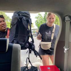 Die letzten Tage habe ich auf Nusa Penida verbracht. Hingekommen bin ich mit einem Speedboat. Turbulente Fahrt. Untergekommen in einem Hostel in dem ich mich mit Neele (Grüße gehen raus an dich, falls du das liest) getroffen hab. Wir haben Glück und haben das Zimmer für uns allein. Den ersten Tag haben wir am Strand verbracht an ein einer Beachbar auf Liegen. Wie soll's auch anders sein, jetzt bin ich dann auch wieder rot, von Kopf bis Fuß. Der Schlaf war dadurch etwas unangenehm. Den Tag drauf haben wir eine Tour mit einem Privatfahrer gemacht. Wir haben uns mit zwei anderen Mädels aus Deutschland zusammen getan und wurden zu den ganzen Spots der Insel gefahren - Crystal Beach, Broken Beach und Kelinking Beach. Mir war so abartig heiß durch den Sonnenbrand und die Sonnencreme 🫠. Aber naja dafür konnte ich den Tag nutzen um etwas bedeckter rumzulaufen und meine Haut zu schonen. Denn heute ging es für mich auf eine Schnorcheltour an vier Spots. Und ich habe tatsächlich das Glück gehabt und habe Mantarochen gesehen. Die Schildkröten müssen wohl hinter mir geschwommen sein, aber allein die Mantarochen zu sehen war es den Ausflug wert. Kann das jemdem Empfehlen, der mal auf Nusa Penida ist, den Trip von Sparrow Snorkeling zu machen. Witzige Guides die den Spaß ihres Lebens haben und den mit uns allen geteilt haben. Dazu gute Musik. Nach dem Trip musste ich mich erst Mal auf die Suche nach einem Taxi machen. War gar nicht so einfach. Aber habe dann aus Zufall mit einem Einheimischischen gesprochen der zufällig Taxifahrer war. Wir standen eine Stunde im Stau (also standen eigentlich eine Stunde am selben Platz auf dem Parkplatz, weil nichts voran ging). War aber ganz witzig, weil alle die an uns vorbei gelaufen sind erst Mal mit uns gesprochen hatten, weil er gefühlt jeden kannte. Also durfte ich jedem genau erklären wo ich her komme und was noch mein Plan im Urlaub ist.