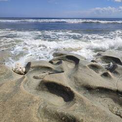 Im Meer hat's mich verspult. Ich hab absolut im Wasser gechillt bis die Surfwellen kamen. Nasendusche umsonst. 😂 (siehe Bilder, ein Video gibt's auch, aber das nicht fürs Internet gemacht haha).