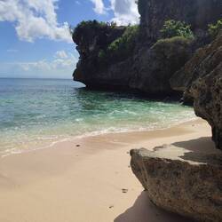 Wir haben haben beschlossen ihr ein Taxi zu holen, dass sie zurück kann und sich ausruhen kann. Und das war definitiv die bessere Entscheidung wie sich später rausgestellt hat. Jutta und ich waren noch beim Kecak Tanz im Tempel von Uluwatu. Ich muss sagen, ich finde da ist ein größerer Hype als es letztendlich ist. Aber war trotzdem mal cool dort gewesen zu sein. Bei der Rückfahrt sind wieder alle Taxifahrer auf uns gestörmt, als ich verstanden hab das die von Rollerpreisen reden, kam zum Glück einer der uns mit dem Auto mitgenommen hat. Beim Hotel sind wir ins Nebenhotel um noch ein Cocktail zu trinken. Danach sind wir zurück. Ich bin sofort eingeschlafen. Habe die ganze Nacht nichts mitbekommen. Muss wirklich müde gewesen sein. Heute morgen hab ich dann erfahren, dass es ganz schön abgegangen sein muss. Denn von uns drei sind jetzt zwei krank und haben sich durch die Nacht gekämpft. Hoffen wir mal das ich verschont bleibe. Weil mit einem verdorbenen Magen will ich morgen ungern ins Flugzeug steigen. Abwarten. Also war ich die einzige die sich heute morgen ein Frühstück gegönnt hat. Anschließend bin ich den Strand entlang gelaufen und hab so ein schönes Plätzchen am Ende des Strands gefunden. Problem war nur, bis ich dort hin geklettert bin kam die Flut immer näher. Ich musste wirklich schnell zurück, weil sonst hätte ich zurück schwimmen müssen. 😂