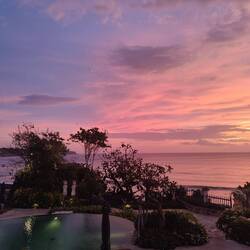 Spannde letzten Tage. Mal schauen ob ich diese noch ganz auf die Reihe bekommen. Eigentlich ist gar nicht so viel passiert. Wir sind vor zwei Tagen von Ubud wieder zu dritt (Pia kam morgens an unsere Unterkunft) gemeinsam Richtung Uluwatu gestartet. Wir sind erst Mittags los. Davor haben wir noch in dem Restaurant vom Tag davor, in dem wir Luisa getroffen haben zusammen gefrühstückt. Und wie das Schicksal es wollte, wir sind gerade aus dem Gästehaus raus, da stand Luisa mit ihrem Gepäck vor unserer Tür. Sie hat auf ihren Fahrer gewartet der sie versetzt hat. Also zusammen mit ihr an die Straße gelaufen und nochmal ein Gojek für die bestellt. Dann kam ihr Fahrer aber doch. Also sie auf den Roller mit ihrem vielen Gepäck und los zum Flughafen. Wir habens uns dann gemütlich gemacht und nach langer Wartezeit unser Frühstück schmecken lassen. Danach gings dann von der super schönen Unterkunft von Ayu los. Die Fahrt ging etwa 2 Stunden. Es war so viel Stau. Wir standen mehr als das wir gefahren sind. An der Unterkunft angekommen mussten wir leider feststellen, dass die Unterkunft den Bewertungen und Bildern auf Booking nicht ganz entspricht. Zum Glück haben wir nur für eine Nacht erstmal gebucht. Dann wollten wir was essen gehen. Also wir aus dem Taxi gestiegen sind hat es in Strömen angefangen zu regnen. Also schnell unters Dach unterstellen. Da das Restaurant nicht so einladend aussah sind wir ein Stück am Strand gelaufen und haben ein ganz nobles Hotel gesehen und gefragt ob sie auch Abendessen haben. Nachdem die Jungs per Funkt gefragt haben dürften wir hoch. Alles ganz schick und vornehmen, mit direktem Blick auf das Meer und den Sonnenuntergang am Dreamland Beach. Die Preise dementsprechend. Wir haben uns erst Mal nur Cocktails bestellt und uns entschieden zu einem anderen Hotel zu laufen und dort zu essen. Da haben wir direkt die Chance genutzt und das nächste Golfmobil der Anlage angehalten und gefragt ob er uns mitnimmt über die Anlage zum Ausgang. Angekommen am nächstem Hotel ging's auf die Dachterrasse. Nicht so schick wie das erste, aber die mit Blick aufs Meer. Meine Nase ist so gelaufen beim Essen, was für meine verstopfte Nase aber praktisch war. Anschließend gings wieder ins Hotel. Habe wirklich nicht gut geschlafen, weil das Zimmer schimmlig war und auch die Atmosphäre nicht wirklich zum wohlfühlen beigetragen hat. Am nächsten Morgen haben wir dort noch gefrückstückt und sind dann etwas 1 km weiter zu einer anderen Unterkunft. Das Flower Bud ist eine süße Anlage mit vielen Bungalows. Wir haben unten ein Bett und im Stock drüber zwei Betten. Die Dusche ist auch wieder im Garten und ich muss sagen eine der besten Duschen die ich bisher auf Bali genutzt hab. Also haben wir direkt versucht nochmal eine Nacht zu verlängern. Ging zuerst nicht, aber dann war doch was frei.