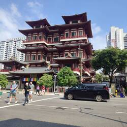 Danach hab ich ein wenig Hunger bekommen. Also direkt ins nächste Restaurant. Die Speisekarte war sehr fleischlastig. Deswegen konnte ich nur zwischen zwei Gerichten aussuchen. Bei einem waren drei Chilishoten abgebildet, bei dem anderen keine. Also hab ich das ohne Chilischoten genommen. Also mein Essen gekommen ist hab ich schon viel rot gesehen - viel frischer Chili. Nach der ersten Gabel hat schon alles gebrannt und meine Augen getränt. Da ich das Essen nicht zurück geben wollte und es wirklich sehr frisch war hab ich noch ein paar Gabeln gegessen. So lange bis ich keine Luft mehr bekommen hab. Für ein Moment musste ich wirklich überlegen wie dieses Atmen, das normalerweise von ganz alleine geht, nochmal funktioniert. Innerlich habe ich so lachen müssen, weil ich bestimmt ziemlich komisch ausgesehen haben muss wie ich am Tisch saß (die einzige die nicht mit Stäbchen gegessen hat und sowieso schon aufgefallen ist) und sich darauf konzentriert hat nicht umzukippen. Nach etwa 15 Minuten ging es dann wieder. Also ich dann gezahlt hab bin ich noch durch den Chinamarkt gelaufen. Eine tolle Atmophäre am Abend. Direkt mein noch fehlenden Singapur Magnet für den Kühlschrank gekauft. Beim Rückweg zum Hotel ist mir eine so riesen große Kakerlake entgegen gekommen, dass ich erst dachte da läuft eine Maus. Kurzer Schockmoment. Willkommen in Singapur.