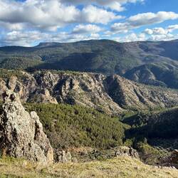 Nous avions quitté la Sierra Nevada en direction du parc naturel des Sierras de Cazorla, Segura y Las Villas, rien que ça, un peu plus au nord, pour rester dans les reliefs. La terre rouge des champs cultivés, émaillée d’oliveraies et de vignes de plus en plus présentes, et, à l’horizon, des cimes enneigées; le tout baigné d’une lumière chaude, presque automnale. Nous restons en admiration devant ce spectacle et voyons à peine passer les journées.